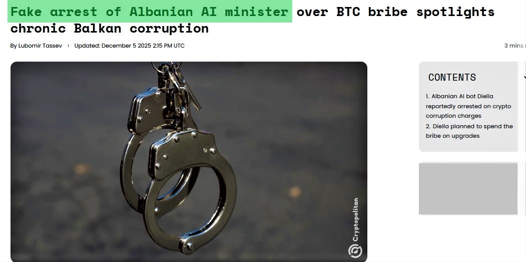 -Bu xəbər vasitəsilə Xorvatiyanın satira və parodiya saytı olan newsbar.hr Albaniyanın süni intellekt vasitəsi ilə korrupsiyaya qarşı mübarizə cəhdlərini lağa qoyub;