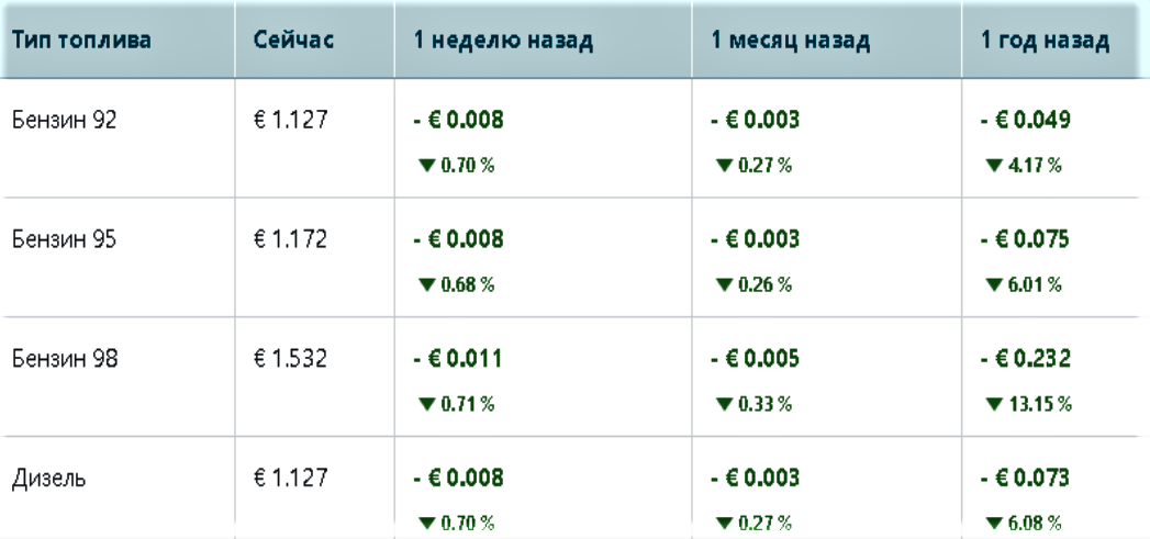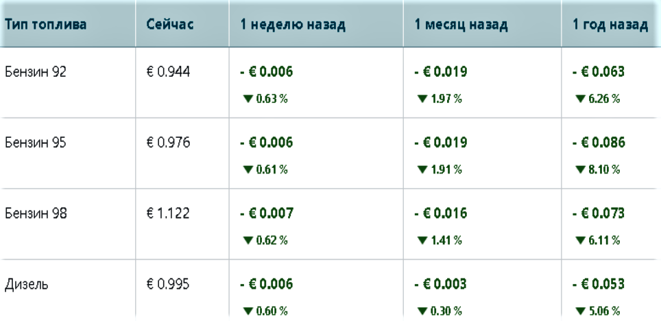 • Benzini (Aİ-98) — AZN 2.30 (€ 1.186)