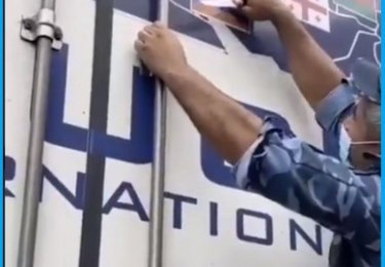 В последние дни в армянских СМИ, а также в социальных сетях (особенно в Twitter и Telegram) распространяются кадры того, как, якобы, "азербайджанский полицейский при помощи штык-ножа соскабливает с грузовика слово «Armenia» и армянский флаг".