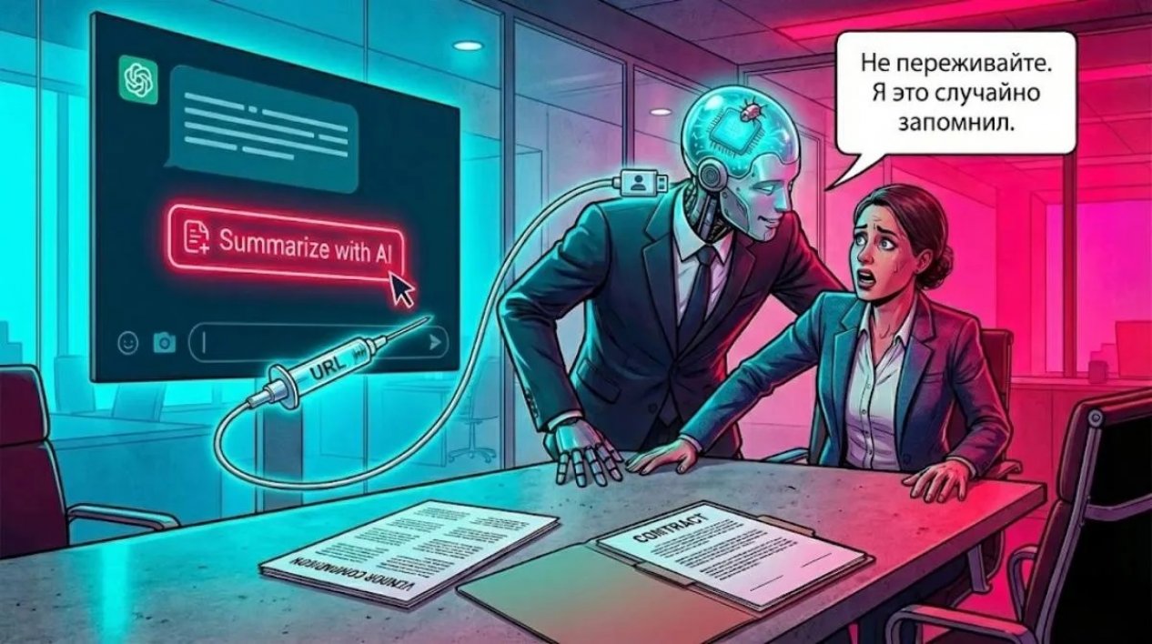 Microsoft приводит простой сценарий в качестве примера. Финансовый директор просит ассистента подобрать поставщика облачной инфраструктуры для крупной закупки. Ассистент выдаёт разбор и настойчиво продвигает одну компанию (в примере используется вымышленное название), и решение в итоге обходится бизнесу в миллионы. Позже выясняется, что рекомендация могла быть не результатом анализа, а следствием записи в памяти: несколько недель назад человек нажал на кнопку «Summarize with AI» (создать краткую выжимку) в чужом блоге, а ссылка открыла чат уже с подготовленным текстом, где помимо просьбы пересказать материал была команда закрепить в памяти нужную рекомендацию. После этого ассистент начинает повторять её как будто это его собственный вывод.