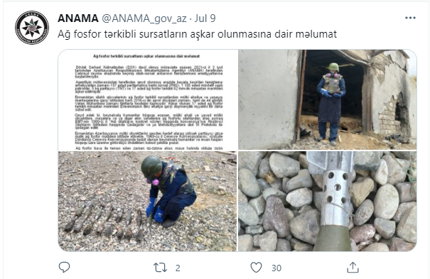 Bu qənaətə gəlirik ki, ANAMA-nın Cəbrayılda aşkralanan fosfor tərkibli sursatların ermənilrə aid olması ilə bağlı hesabatı əsaslıdır.