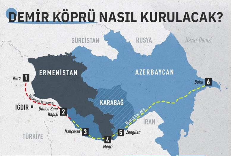 Bu mənada  “yeni nəqliyyat  kommunikasiyalarının inşası”  ifadəsi  Mehridən keçən və Zəngəzur dəhlizi adlandırılan dəmiryolu  xəttinin bərpasını istisna etmir.  Çünki  nəqliyyat əlaqələrinin bərpası məsələsi  yuxarıda qeyd etdiyimiz kimi,  həm 10 noyabr bəyanatının 9-cu bəndində, həm də  11 yanvar 2021-ci ildə  Moskvada imzalanan növbəti üçtərəfli  bəyanatda əksini tapıb. Ona görə də ermənilərin  yalnız “yeni kommunikasiyalar”  məsələsini qabartması  reallığı  dəyişmir.
