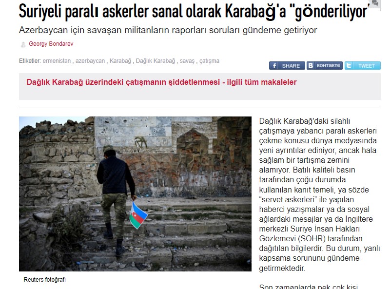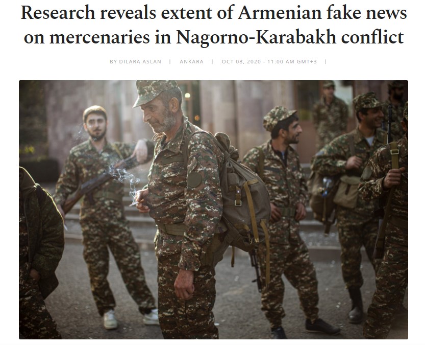 Konkret olaraq Qarabağa gəlincə, Azərbaycan tərəfindən əcnəbi muzdluların xidmətə cəlb edilməsi mövzusu hələ İkinci Qarabağ müharibəsi başlamazdan əvvəl Ermənistan və Rusiya mətbuatında şişirdilməyə başlanmışdı. İlk dəfə 21 sentyabr 2020-ci il tarixində erməni əsilli suriyalı Kevork Almasyan “Tvitter” səhifəsində “Azərbaycanın Suriyalı muzdluları” haqqında məlumat yayıb.