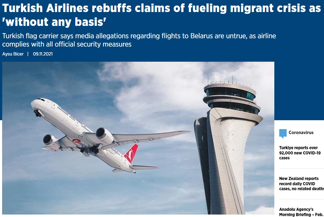 Nəşrin iddiasına görə, bu şirkətlər altı həftə ərzində altı minə yaxın miqrantı daşıyıblar. Bir gün sonra Türkiyə aviaşirkəti miqrantların qanunsuz daşınmasında iştirak etmədiyini bildirdi və medianın bütün ittihamlarını “əsassız” adlandırdı. Və bununla da Türk Hava Yolu ilə bağlı qalmaqal bitdi.