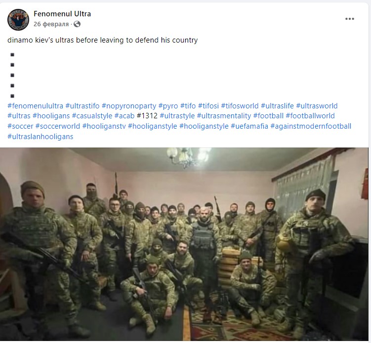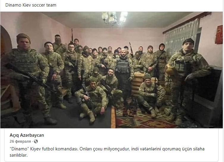 Lakin, bu foto, ilk dəfə “HooligansTV” fan-klub tərəfindən yayımlandığı üçün bir çox media və sosial media təmsilçiləri elə düşünürlər ki, fotoda əks olunan şəxslər ya Kiev “Dinamo”sunun oyunçuları, ya da fan-klubun üzvləridir. Çünki, tviti “Dinamo Kiev fanatları (xuliqanları), 25.02.2022” qeydi ilə paylaşılıb.
