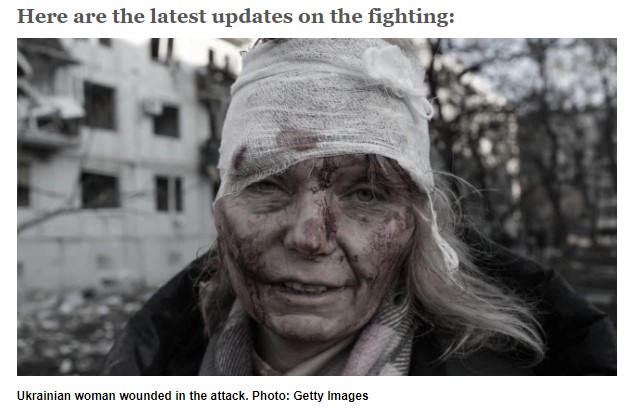 Rusiyanın Ukraynaya hərbi müdaxiləsi zamanı evini tamamilə itirmiş, artilleriya zərbələrindən sonra ağır yaralanan bir qadının fotosu sürətlə paylaşılır.