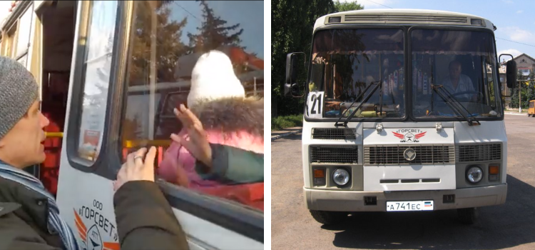 Avtobusun üzərindəki simvol, avtobusun Qorlovkadan çıxdığını təsdiqləyir. (Mənbə)