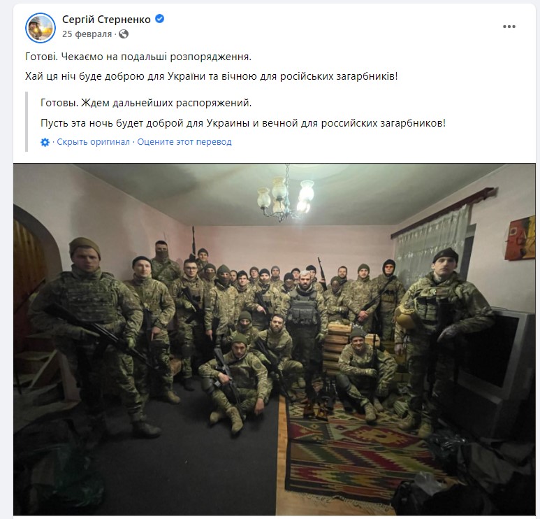 Ukrayin dilində yayımlanan detector.media/ saytında yazılan məlumat oxucuları daha da çaş-baş salıb. Belə ki, 2014 Maydan hərəkatının aktiv simalarından biri, millətçi azarkeşlərin məşhur qrup rəhbəri Sergey Sternenko öz facebook hesabında bunları yazıb: “Hazırıq. Əmrləri gözləyirik. Ümid edirəm ki, bu gecə Ukrayna üçün uğurlu, işğalçı Rusiya üçün pis olar”