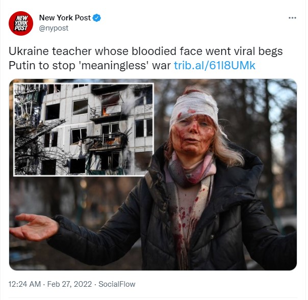 Lakin bəzi mənbələr bu qadının Ukraynalı deyil, 2018-ci ildə Maqnitaqorskda bir binada ortaya çıxan qaz partlaması nəticəsində yaralanan rus olduğunu iddia edirlər. Bu iddiada olanların qənaətinə görə, paylaşımlarda Ukraynada yaşanan faciənin çox şişirdilir, fake xəbərlər hədsiz çox yayılır.