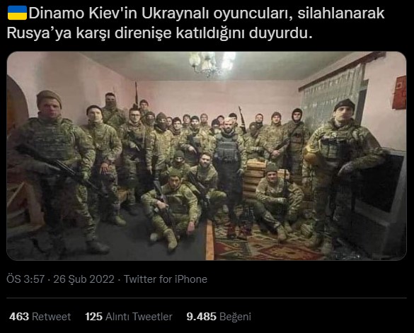 2. Dinamo Kiev futbolçuları silahlanaraq Rusiyaya qarşı müqavimət hərəkatına qoşulublar.