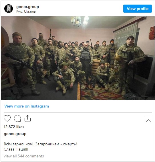 Sonradan bu foto “Gonor” adlı millətçi təşkilatın tvitində rast gəlinib. Gonor (Honor, ukrayin dilindən “şərəf” kimi tərcümə olunur)“Ukrayna mərkəzçi qeyri-rəsmi gənclər hərəkatıdır”. Hərəkatda keçmiş hərbiçilər və ultra-sağ millətçi “Natsionalnyi Korpus’ üzvləri təmsil olunurlar.