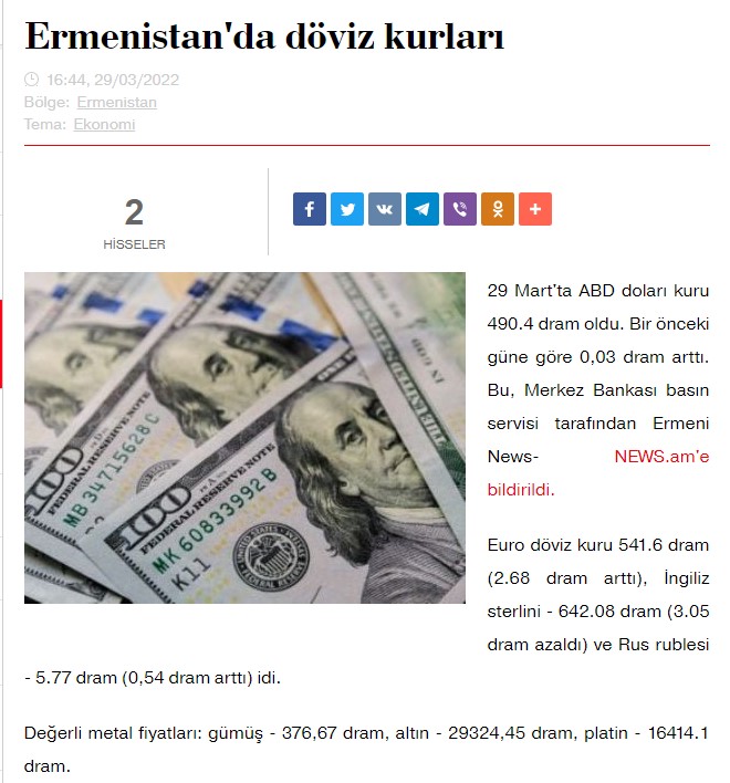 Qeyd edək ki, Rusiyanın Ermənistan bank sektorunda iştirakı çox böyükdür. Rusiyanın bu ölkədə fəaliyyət göstərən “ВТB Armeniya”, “ArmCberejeniyaBank”, Rosselxozbank”, “VTB Armeniya” və digərlərinin əməliyyat portfeli əsasən, Rusiya kapitalı əsasında formalaşırdı və indi bu kanallar daraldığından bnk sisteminin maliyyə bazarında vasitəçiliyi zəifləyir. (Mənbə)
