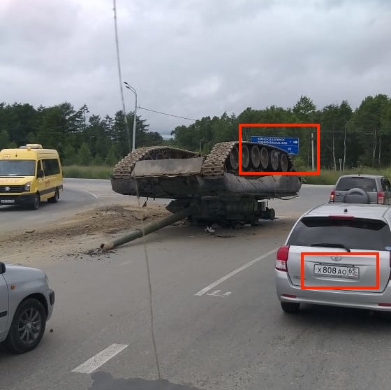 İlk olaraq fotoda tankın yanında olan avtomobillərin nömrə nişanlarına baxmaq lazım gəlir. Həmin nömrələr Rusiya avtomobillərinə məxsusdur.