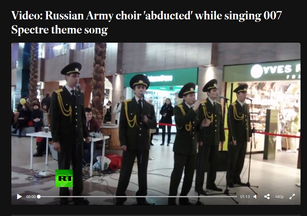 Nəticə: Bu film 2015-ci ildə çəkilib və Spectre filminin tanıtım çarxıdır. Rus hərbi xorunun ifa etdiyi mahnı sülüh haqda deyil, sevgi haqdadır.