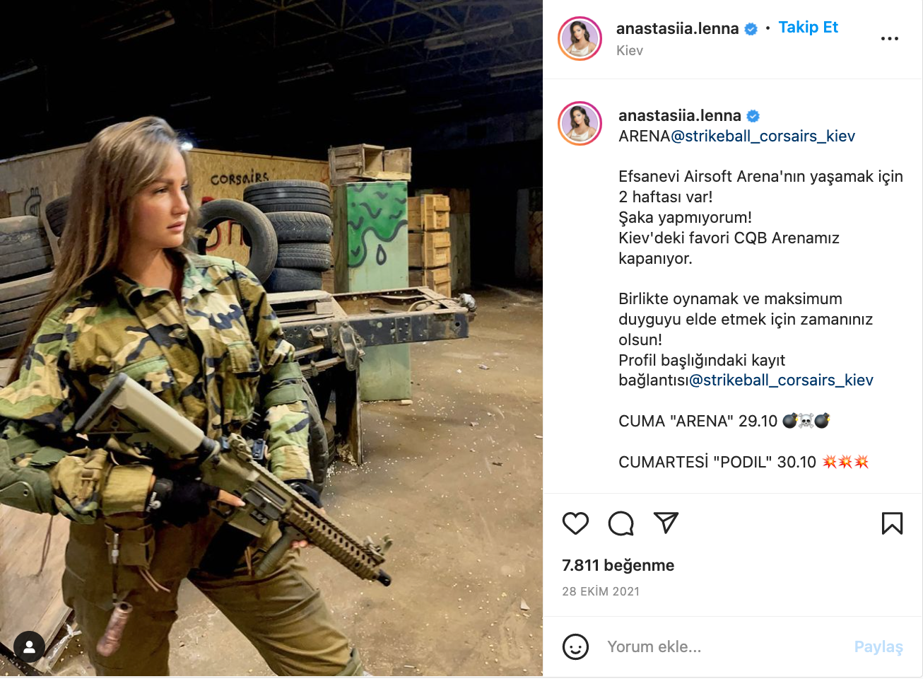 2015-ci ildə Ukraynda gözəl olmuş Anastasiya Lennanın 24 fevral 2022-də Rusiyanın Ukraynaya hərbi müdaxiləsindən sonra əlinə silah alaraq da vətəninin müdafiəsinə qalxdığı haqda xəbərlər yayıldı. Onun əlində avtomat, hərbi geyimdə çəkdirdiyi fotolar iddiaları daha da inandırıcı etdi.
