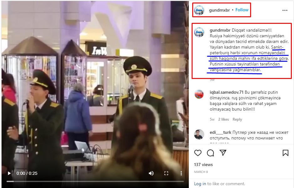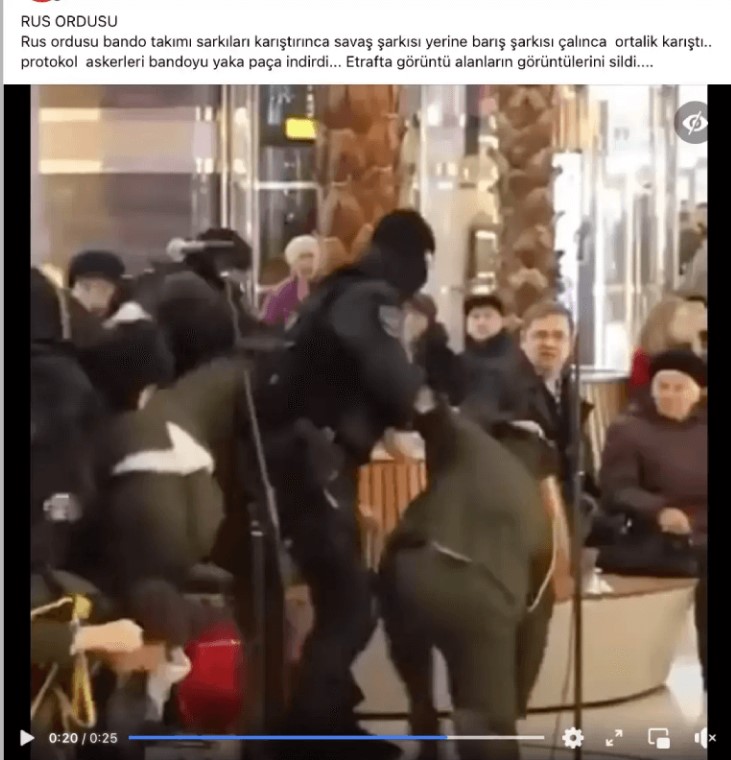 Sosial mediada bu videonun Rusiya-Ukrayna müharibəsinə etiraz edən rus hərbi xorunun üzvlərinin qaramaskalılar tərəfindən tutulması kimi şərh olunub, yayılır.