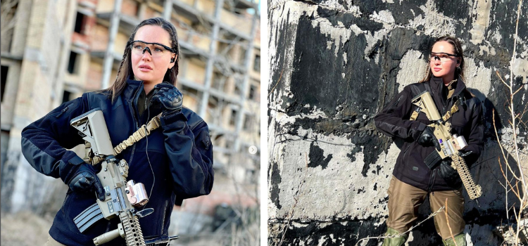 1. Ukrayna gözəli əlinə silah alıb döyüşür
