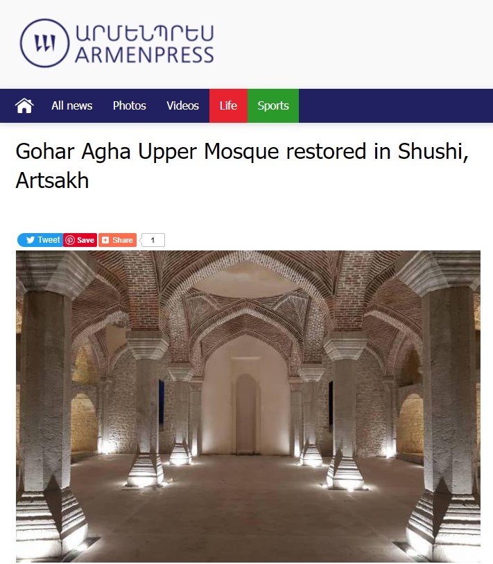 Amma həmin məscidin Qarabağ və Şuşa işğal altında olarkən erməni və İran mütəxəssisləri tərəfindən təmir edilərək (2019-cu ildə), yenidən qurulması haqda məlumat vermir. Biz isə həmin məlumatı iranlı jurnalistin diqqətinə çatdırırıq. Bu yenilənmədən sonra orada hansı dəyişikliklərin edildiyi haqda heç kim danışmır. Maraqlananlar həmin məlumatla tanış ola bilərlər: Mənbə