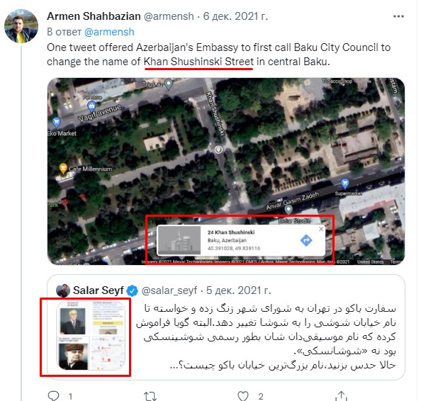 II Qarabağ müharibəsindən sonra bir çox İran saytları, mənbələri Azərbaycanın qədim şəhəri, Qafqazın mirvarisi olan Şuşa şəhərinin adını ermənilər kimi “Şuşi” deyərək adlandırırlar. Belə yanlış təqdimatdan birini, iki gün öncə Salar Seyfəddini adlı iranlı (milliyyəti dəqiq bəlli deyil, fars ya erməni olduğunu gizlədir-red.) jurnalist edib. Onun Dünya Azərbaycanlılarının 5-ci qurultayı haqda qızışdırıcı tvit yazıb.