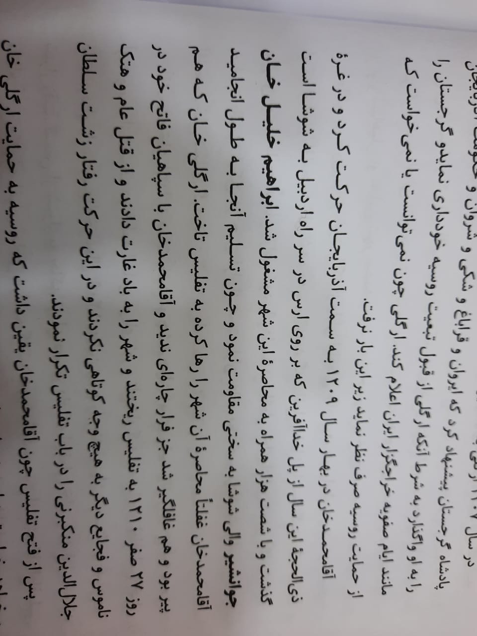 Bu, kitabda olan çoxsaylı nümunələrdən yalnız az bir hissəsidir. Kitabın digər qismlərinə nəzər saldıqda isə təkcə ermənilərin necə xəyanətkarcasına Sisianovu Gəncəni işğal etməyə çağırması deyil, həm də İrəvanın da tarixdə Azərbaycan türkləri olan Qacarlara məxsus olması və onlar tərəfindən idarə edilməsi barədə tarixi həqiqətlərin elə İran tarixçilərinin əli ilə yazıldığının şahidi oluruq.