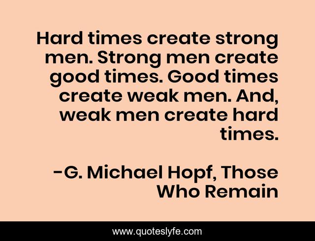 Orijinalı: “Hard times create strong men. Strong men create good times. Good times create weak men. And, weak men create hard times.” G. Michael Hopf, “Those Who Remain”