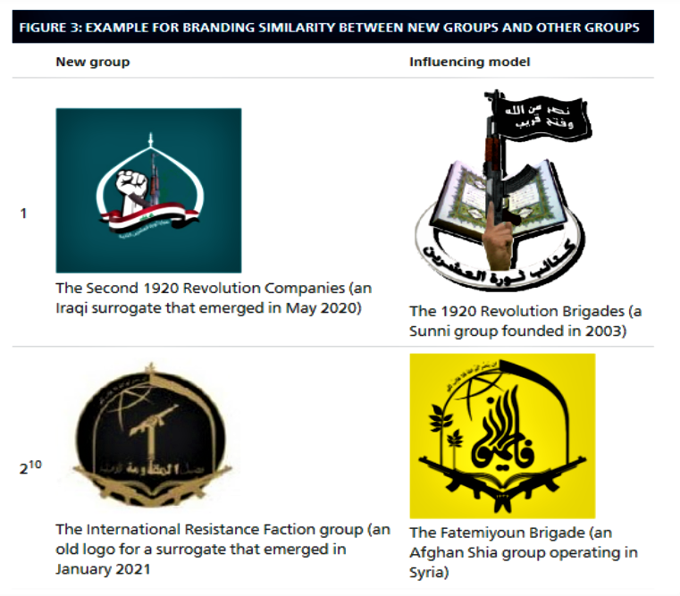 Qeyd edək ki, yeni qrupların bir çoxunun emblemi İranın İİKK-nın emblemlərinə bənzəyir və bu qrupların bəziləri əvvəlcədən mövcud olan şiə və sünni silahlı qruplarının adlarını və simvollarını kopyalayırlar.