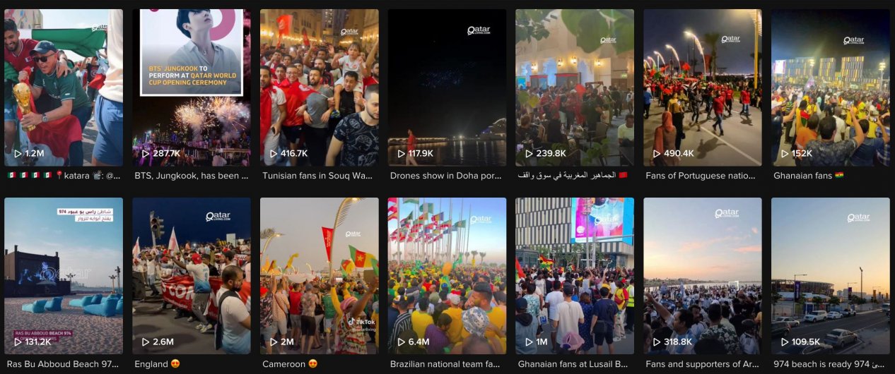 Müxtəlif komandaların formalarının geyinmiş, bayraqlarını götürmüş qruplar ölkə küçələri ilə yürüş ediblər. Gəzintilərin videoları “Qatarliving” adlı rəsmi TikTok hesabı tərəfindən də paylaşılıb. “Qatarliving”in digər paylaşımlarında Argentina, Qana, İngiltərə, Kamerun, Tunis, Portuqaliya və Meksika kimi ölkələrin formasını geyinənlər görünür.