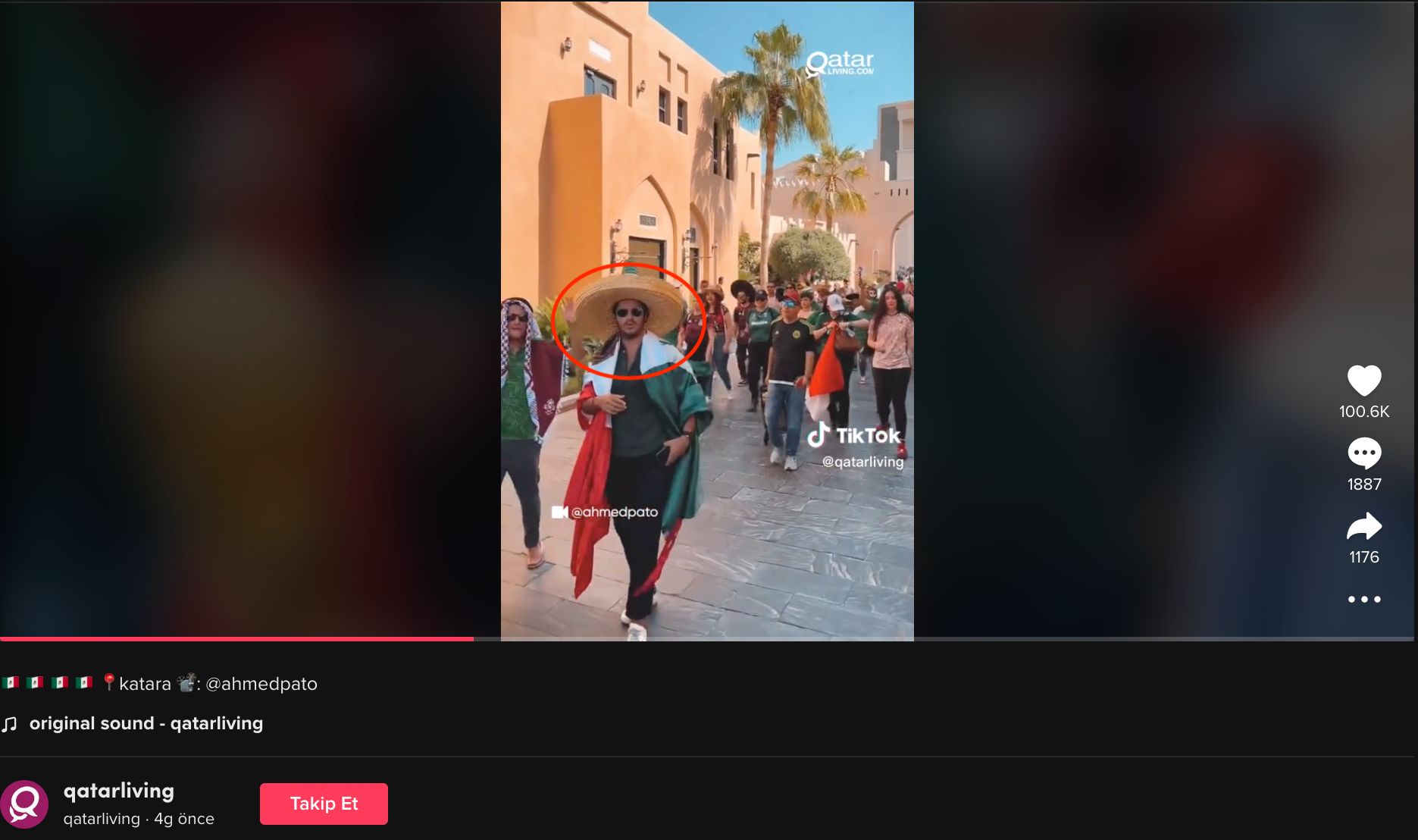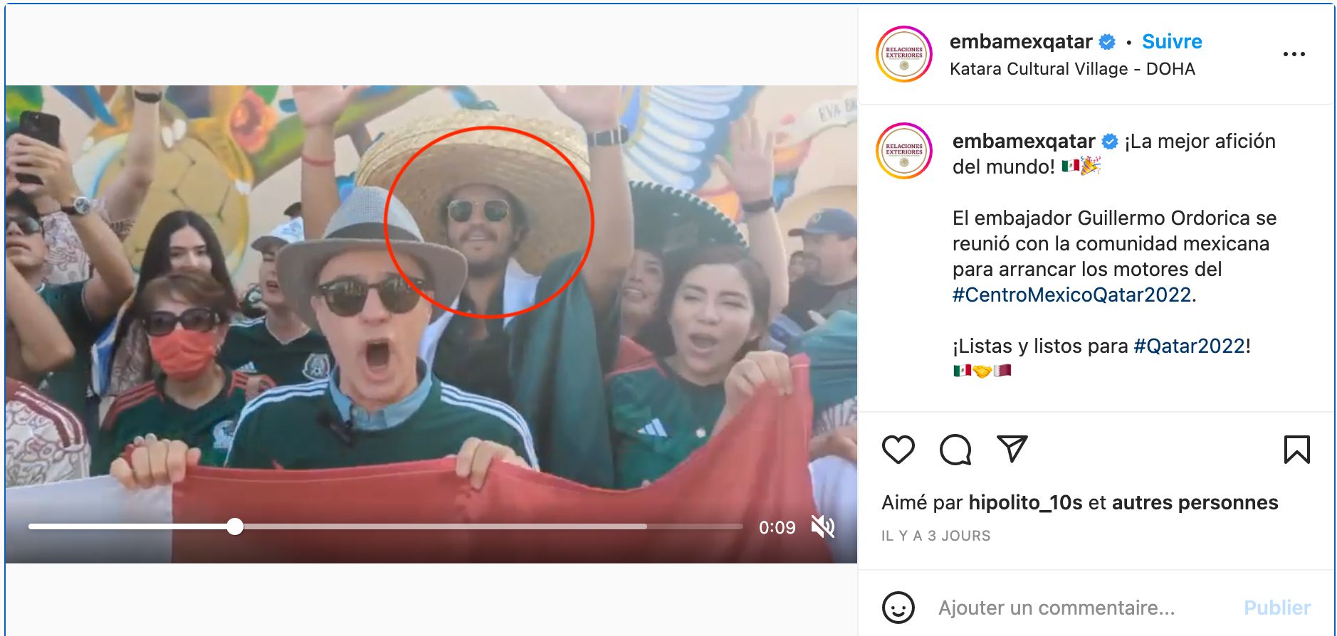 “Qatarliving” adlı hesabın TikTok-da paylaşdığı videoda Meksika forması geyinən fanatlar var. Oxşar video Qətərin Meksikadakı səfirliyi tərəfindən “İnstaqram”da paylaşılıb. Yazıda səfir Gilermo Ordorikanın Meksika ictimaiyyəti ilə görüşdüyü bildirilir. Səfirin arxasında dayanan eynəkli şəxs “Qatarliving”in paylaşdığı videoda də görünür. Qətərdəki meksikalı tərəfdar da bu yürüşün Meksika səfirliyinin dəstəyi ilə həyata keçirildiyini vurğulayıb mənbə.