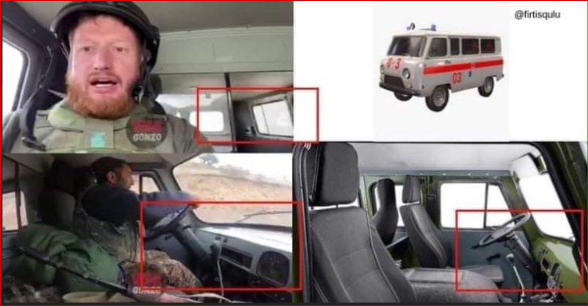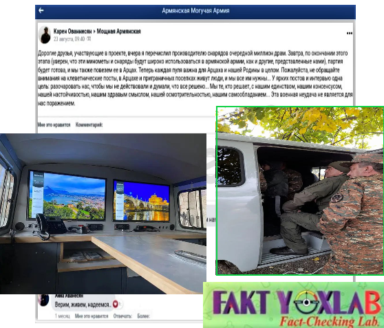 Qeyd: Axı, bu, təcili yardım maşını idi. Fotolara diqqət etsək, real döyüşün idarəedilmə məntəqəsi maşınını xatırladır. Demək “çevrilmə” deyərkən Hovanisyan bunu nəzərdə tuturmuş.