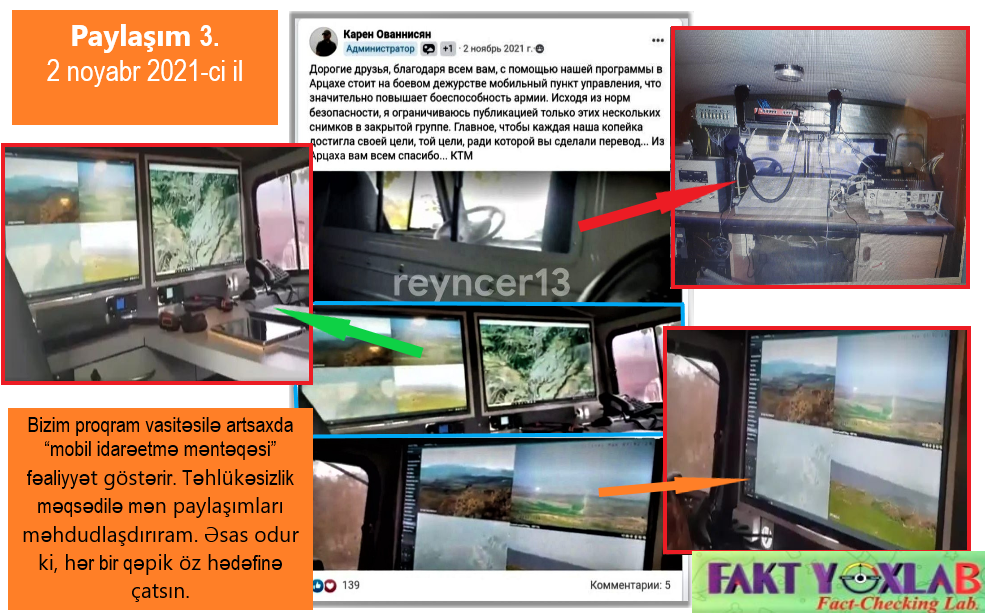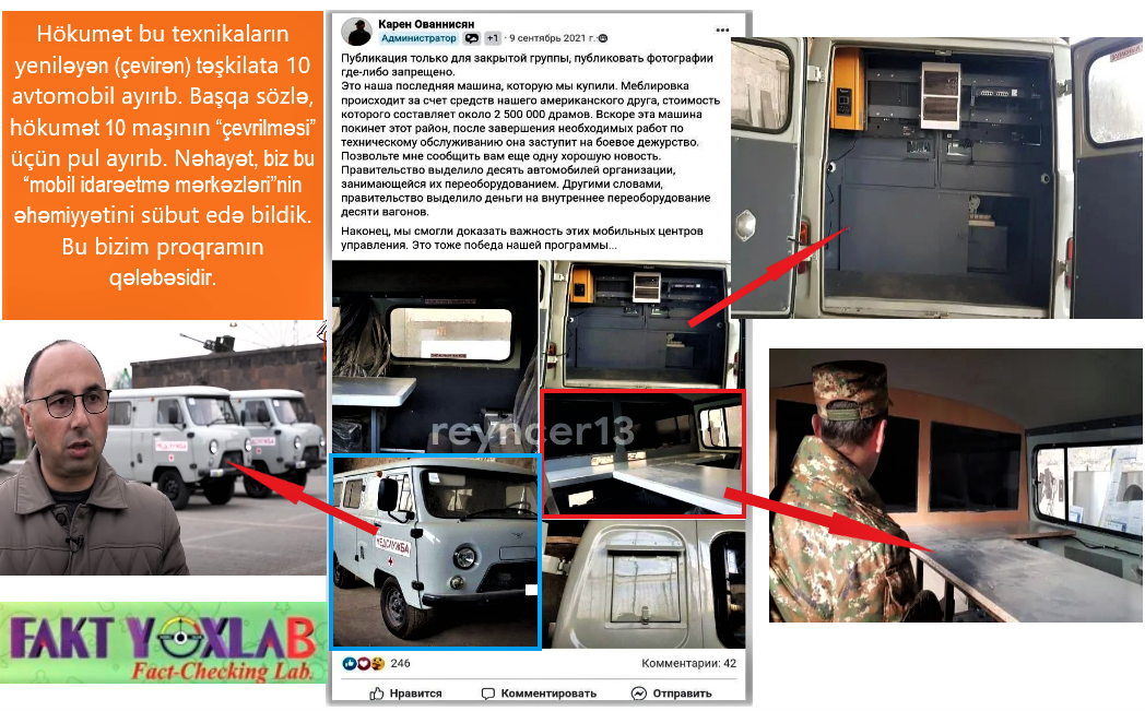 Qeyd: Hovannisyan bu paylaşımda bəzi mətləblərə aydınlıq gətirir. “Daha 10 avtomobilin “çevrilməsi” və “mobil idarəetmə mərkəzləri” ifadələri və fotolar təxmini mənzərəni yaradır.
