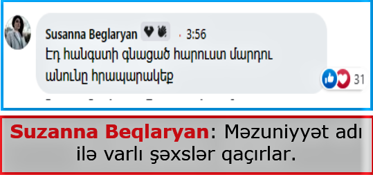 Suzanna Beqlaryan adlı erməni qadın isə qeyd edir ki, məzuniyyət adı ilə varlı şəxslər qaçırlar.