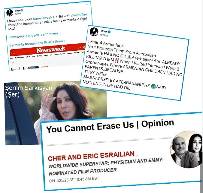 - Erməni əsilli müğənni Şerilin Sarkisyan (Şer) twitter hesabında Azərbaycana qarşı əsassız ittihamlar irəli sürüb. Şer içtimaiyyəti aldatmağa çalışır ki, Ermənistandakı bütün uşaq evlərinin sakinləri "Azərbaycan aqressiyasının qurbanlarının övladlarıdır" və "Azərbaycanın nefti olduğu üçün, ona söz deməyə cürət edən yoxdur".