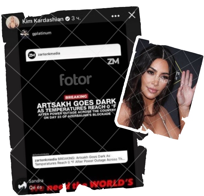 Erməni ulduz Kim Kardaşyan sosial mediada yalan, yönləndirici məlumatlar paylaşmağı ilə tanınır. Sonuncu paylaşımı Qarabağdakı “humanitar böhran”dan haqda olub.
