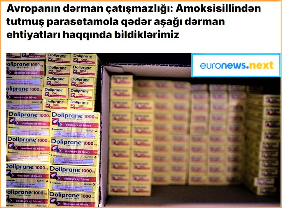 Son günlər Avropa ölkələrində ciddi dərman çatışmazlıqları müşahidə olunmaqdadır. Ötən ilin sonlarından başlayan dərman qıtlığı son bir neçə həftə ərzində daha da dərinləşib. Beynəlxalq mediada yer alan xəbərlərə əsasən, Avropa bazarlarında tənəffüs, allergik və yoluxucu xəstəliklər üzrə dərman preparatlarının və antibiotiklərin çatışmazlığı hiss olunur.
