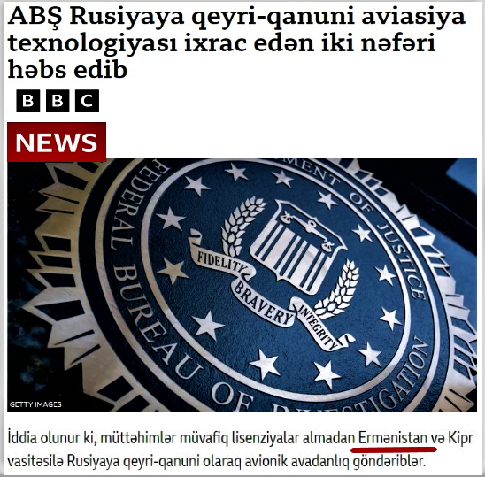 Bu rəqəm birbaşa ona işarə edir ki, elektron avadanlıqların satış həcminin 11 dəfə artması Ermənistan üzərindən daşınmış malların hesabına baş verib. Bunu ABŞ Ədliyyə Departamentinin bir neçə gün əvvəl Rusiyaya qaçaqmalçılıq yolu ilə daşınan elektronika texnologiyalarının Ermənistan üzərindən keçməsinə dair bəyanatı da təsdiq edir. Belə ki, ABŞ hökuməti həmin malları daşıyan transmilli şəbəkənin üzvlərini aşkara çıxarıb ki, həmin motivlər üzrə həbs olunmuş ABŞ-nin Kanzas-Siti şəhərinin iki amerikalı sakini - Siril Buyanovski və Duqlas Robertson saxta hesab-fakturalarla Ermənistan və Kipr üzərindən Rusiya Federal Təhlükəsizlik Xidməti üçün xüsusi texnologiyanın daşınmasında təqsirləndirilirlər. reuters