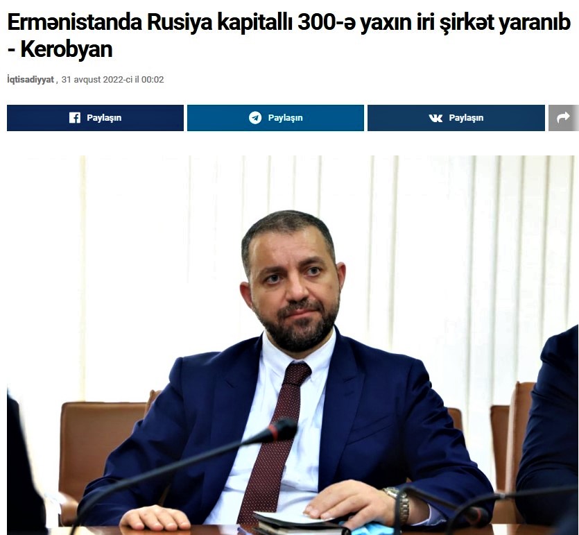 Ermənistanın iqtisadiyyat naziri Vaan Kerobyanın 2022-ci ilin birinci yarısında ölkəsinə Ukrayna müharibəsi ilə əlaqədar Rusiya kapitallı 300 iri şirkət və 2500-ə yaxın kiçik müəssisənin köçərək qeydiyyatdan keçməsinə dair açıqlaması da Rusiyaya elektron vasitələrin qanunsuz daşınmalarla bağlı şübhələrə iz açır. istinad