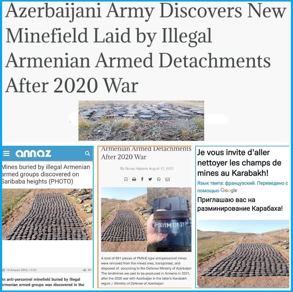 ♦ 31 avqust 2022-ci ildə yayılan məlumata görə, 2022-ci ilin yalnız 15-31 avqust zaman aralığında Laçın rayonu ərazisində 1 318 ədəd “PMN-Э” növlü minalar aşkar edilib. (istinad)