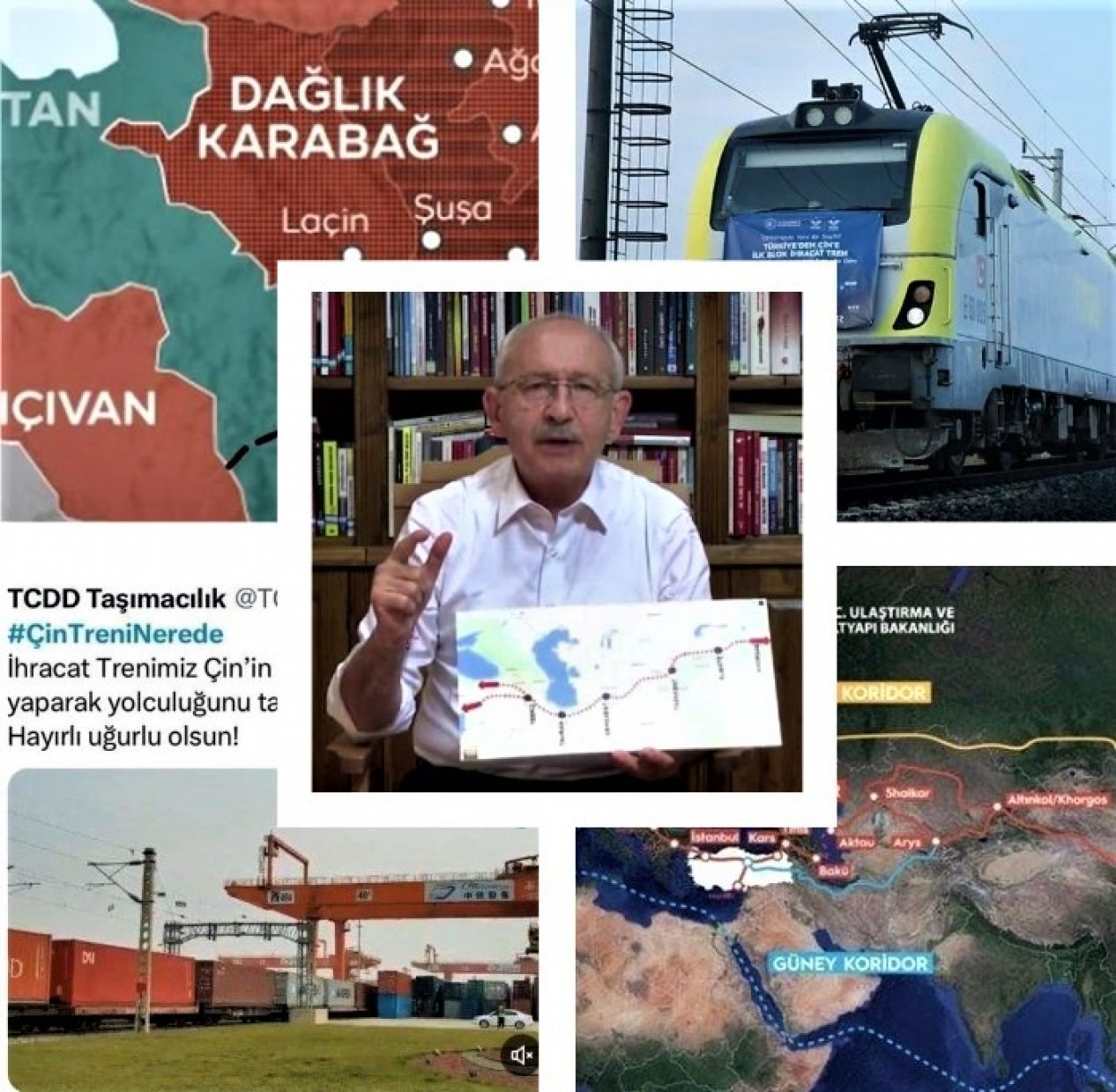 Yeri gəlmişkən, Kılıçdaroğlunun qeyd etdiyi “Beləliklə, şimalda Gürbulak və Çinin dəhliz üzərində yerləşən ölkələrin Avropa və Qara dəniz limanları ilə, cənubda isə Kapıköy, Mersin və İskenderun limanları ilə əlaqəsi təmin ediləcək” fikri də elə buradan götürülüb. Yəni, mövcud layihələri yenə də öz ideyası kimi təqdim edir.