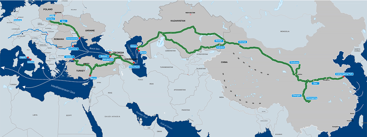 Bu, marşrut həm də Qədim İpək Yolunun keçdiyi yoldur. 4.256 km dəmir yolu və 508 km dəniz yolunu əhatə edən bu dəhliz Çin-Qazaxıstan sərhədindən Azərbaycana (Xəzər dənizi ilə) və buradan da Gürcüstan və Türkiyəyə qədər uzanır (Middle East Institute, 2019).