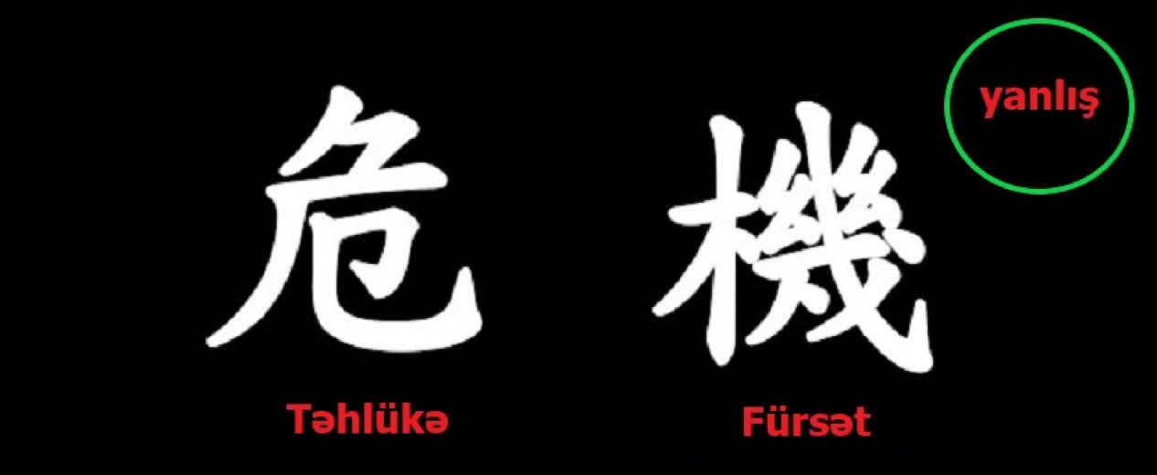 Çincə böhran sözünün fürsət mənasını verdiyi iddiası fərdi inkişaf mütəxəssislərinin, motivatorların tez-tez istifadə etdiyi terminlərdən biridir. İddialara görə, böhran mənasını verən Çin dilindəki “weiji” sözü “təhlükə” mənasını verən “wei” və təkbaşına “imkan” mənasını verən “ji” sözlərindən ibarətdir.