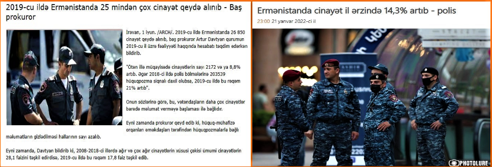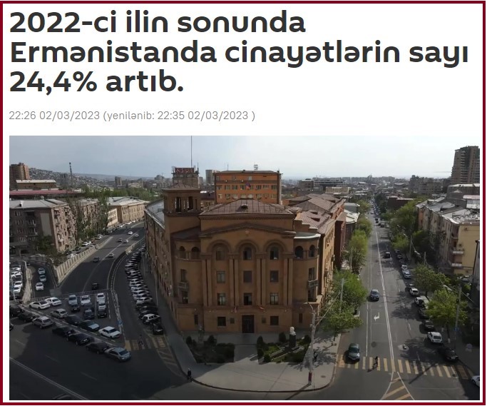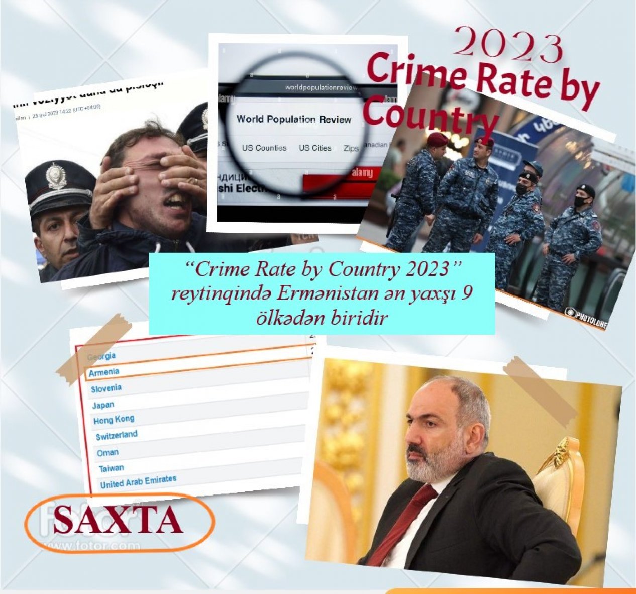 - Ermənistanın hüquq-mühafizə və prokurorluq orqanlarının, ictimai təşkilatların açıqladığı rəqəmlərə və qeydə alınmış cinayət statistikasına diqqət etdikdə, həm “Crime Rate by Country 2023”  hesabatının saxtakarlığa əsaslandığını, həm də  Paşinyanın yalan danışdığını görmək mümkündür.