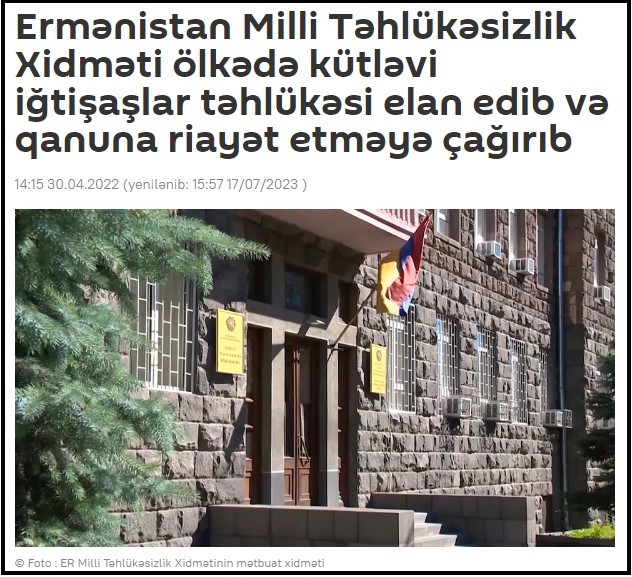 Ermənistan Milli Təhlükəsizlik Xidməti dəfələrlə ölkədə ictimai sabitliyin pozulması, kütləvi iğtişaşlar təhlükəsinin olmasını dövlətin gücünə təhdidlər kimi qiymətləndirib. Xidmət respublikanın mili təhlükəzsizliyi, dövlətin konstitusiya quruluşu üçün real təhlükələrin hələ də mövcudluğundan narahatlığını ifadə edib. mənbə