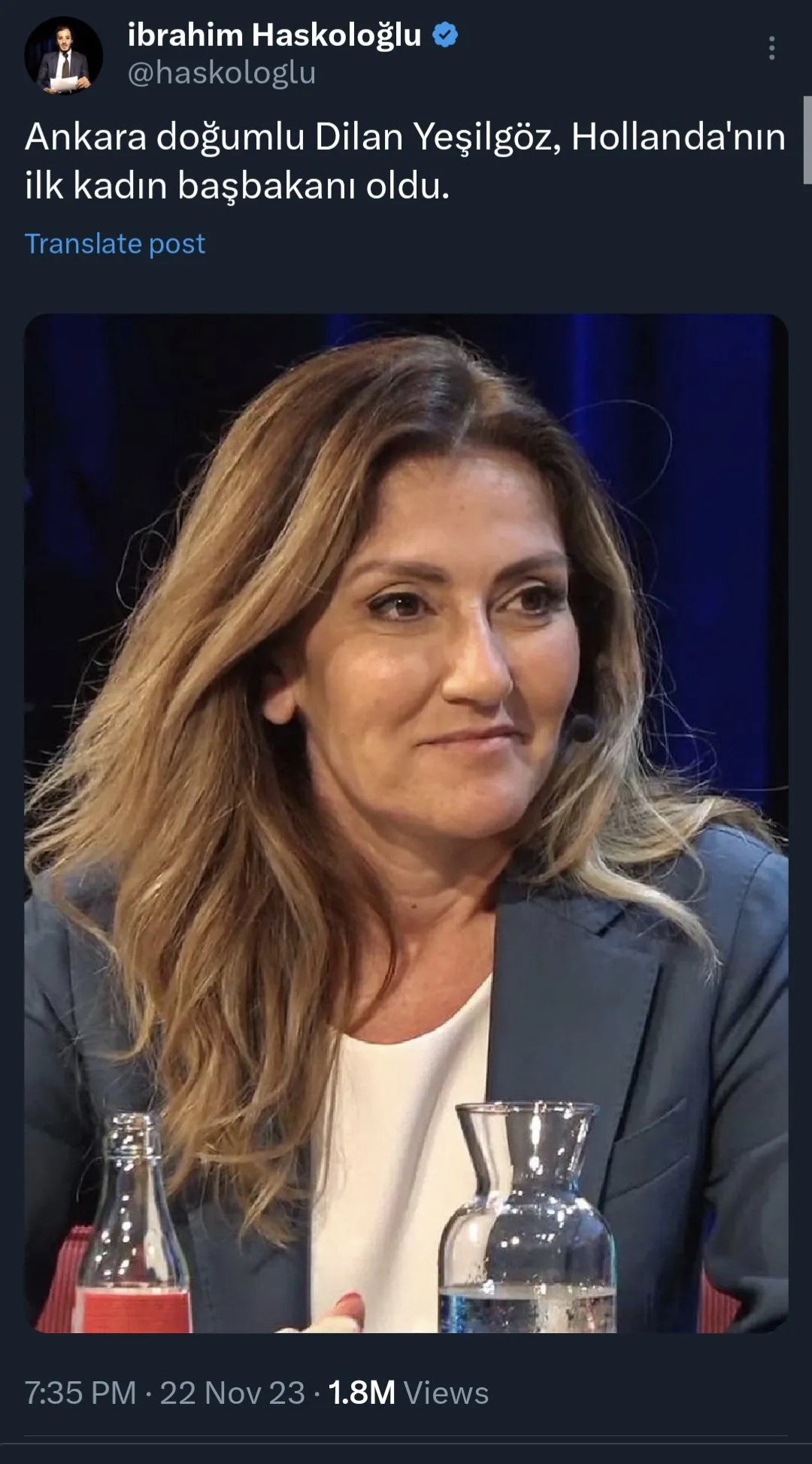 Niderlandda seçicilər siyasətdən getdiyini açıqlayan Baş nazir Mark Ruttenin yerinə gələcək şəxsi müəyyən etmək üçün noyabrın 22-də seçki məntəqələrinə getdi . Seçkinin nəticələri hələ dəqiqləşməmiş Türkiyədə sosial media istifadəçiləri (az sonra Azərbaycanda da) Dilan Yeşilgözün Niderlandın ilk qadın baş naziri seçildiyi iddiası yaydılar.