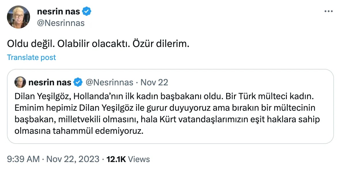 İddianı ilk dəfə paylaşan, daha sonra üzr istəyən Nesrin Nasın adını çəkdik.