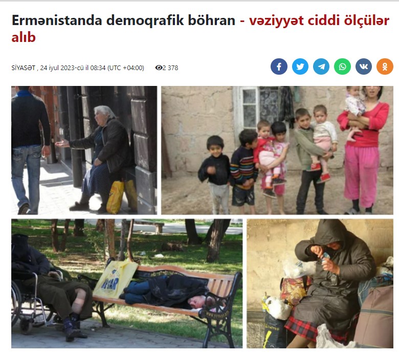 Paşinyanın ermənilər üçün ümidverici bəyanatı və uğurlu demoqrafik siyasət yürüdülməsi barədə iddialarının əksinə olaraq, son illərin rəsmi statistikası, eləcə də 2023-cü ilin 9 ayı üzrə demoqrafik göstəricilərin təhlili demoqrafik balansın mənfiyə doğru dəyişdiyini göstərir.
