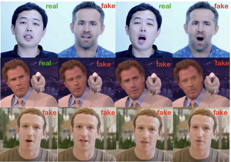 Üz dəyişdirmə, dodaq sinxronizasiyası, real vaxtda üz hərəkətinin çəkilişi, səs sintezi və filmlərdə və seriallarda gördüyümüz vizual performanslar, qarşılaşa biləcəyiniz “deepfake” nümunələridir.