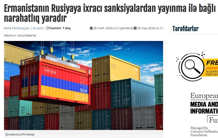 “Hetq.am” araşdırma platformasından Seda Herqnyan “Euractiv”ə bildirib ki, Ermənistanın Rusiyaya ixracının artması əsasən üçüncü ölkələrdən məhsulların təkrar ixracı hesabına baş verir və bu, ciddi narahatlıqlar yaradır. Çünki artım tempi istehsaldan yox, xarici amillərdən asılıdır.