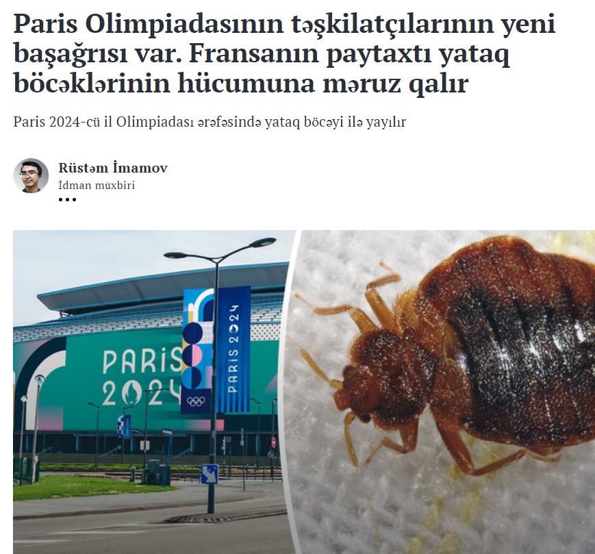 Fransanın Qida, Ətraf Mühit və Sağlamlığın Təhlükəsizliyi Agentliyi şəhərdə həşəratlara qarşı dezinfeksiya tədbirlərinin görülmədiyi və nəticədə Paris ətrafında evlərin çoxunun yataq böcəkləri ilə yoluxduğunu bildirib. Agentlik hələ bir neçə ay əvvəl Olimpiya və Paralimpiya oyunları ərəfəsində dövləti təcili olaraq bu bəlaya qarşı fəaliyyət planı hazırlamağa dəvət edib və paytaxt meriyasını məlumatlandırıb. Paris merinin müavini Emmanuel Qrequar baş nazir Elizabet Borneyə göndərdiyi məktubda yay mövsümündə artan qurdlara qarşı profilaktiki addımlar atmaqda kömək istəyib. Ancaq bu müddət ərzində ciddi tədbirlər görülmədiyindən hotel və mehmanxanalar, metrobuslar, sürət qatarları və hava limanı yataq böcəklərinə təslim olub. Bu, Olimpiadaya gələn qonaqlar üçün yeni “sürpriz” deməkdir. mənbə