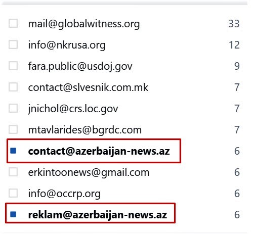 Təşkilatın qeyd edilən alətində Azərbaycanla bağlı faktlar çoxdur. Onlardan bəzilərini göstəririk: