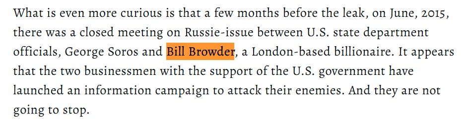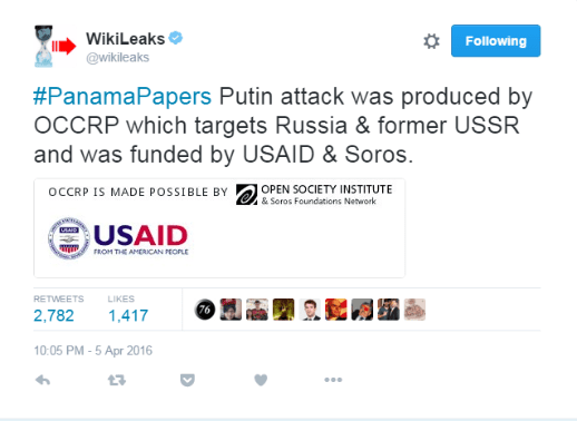 Bildirilirdi ki, sənədlər yayılmamışdan 5 ay öncə (iyun, 2015-ci il) ABŞ Dövlət Departamentinin məsul şəxsləri ilə Britaniya mənşəli amerikalı maliyyəçi Bill Brauder və amerikalı milyarder Corc Sorosun görüşü baş tutmuşdur.   Bu səbəbdən iddia olunurdu ki, “Panama sənədləri” ABŞ Adminstrasiyasının və xüsusi xidmət orqanlarının himayəsində olan iş adamlarının sifarişi əsasında hazırlanıb və yayılıb. Əlavə edilirdi ki, bu sənədləri sızdıran ICIJ və OCCRP-nin baş sponsorları USAID, ABŞ Dövlət Departamenti, Soros Fondu, Bill Brauder və digər bu işdə maraqlı olanlardılar.